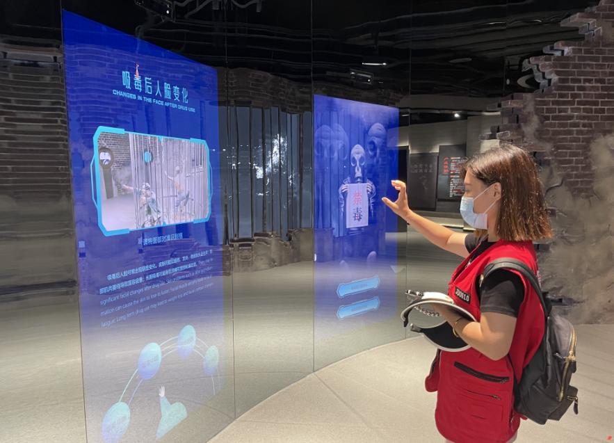 輕觸按鈕即可觀察毒品原株生長,開關(guān)木門即可挑戰(zhàn)5種吸毒誘惑,宣誓禁毒即可上傳簽名至漢陽樹上。6月26日是第36個國際禁毒日,當日武漢市漢陽區(qū)禁毒宣傳教育基地正式開館,60余名禁毒社工與部分群眾參觀后,直呼科技感爆棚互動性拉滿。
